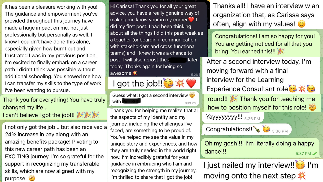 Personalized Support: Whether you’re just exploring or already applying, you’ll get 1:1 coaching tailored to your exact stage of transition.
